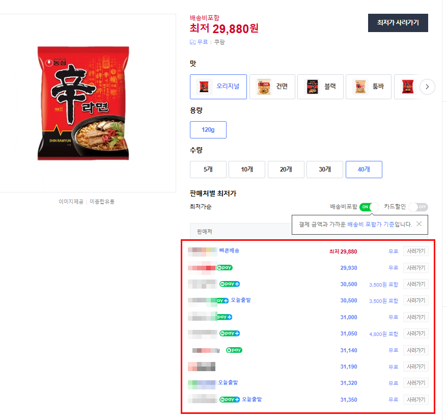 여기를 클릭하면 이렇게 아래와 같이 여러 셀러가 쿠팡과 같이 가격경쟁을 하고 있는 것으로 보입니다.