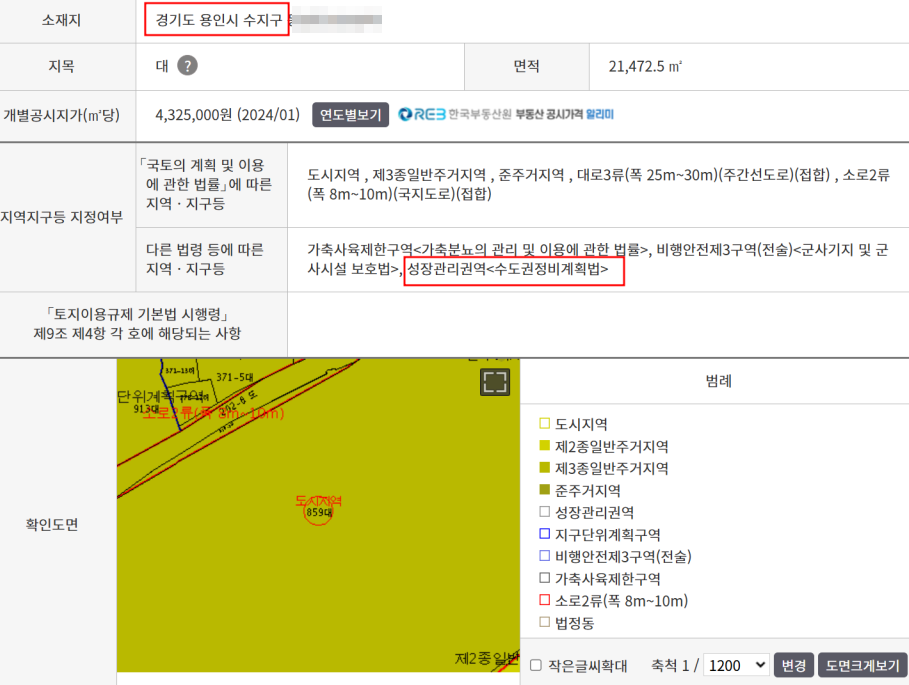 국토부 사이트인 토지이음에서 검색한 경기도 지역의 과밀 비과밀 확인 방법 (용인-비과밀, 시흥-과밀)